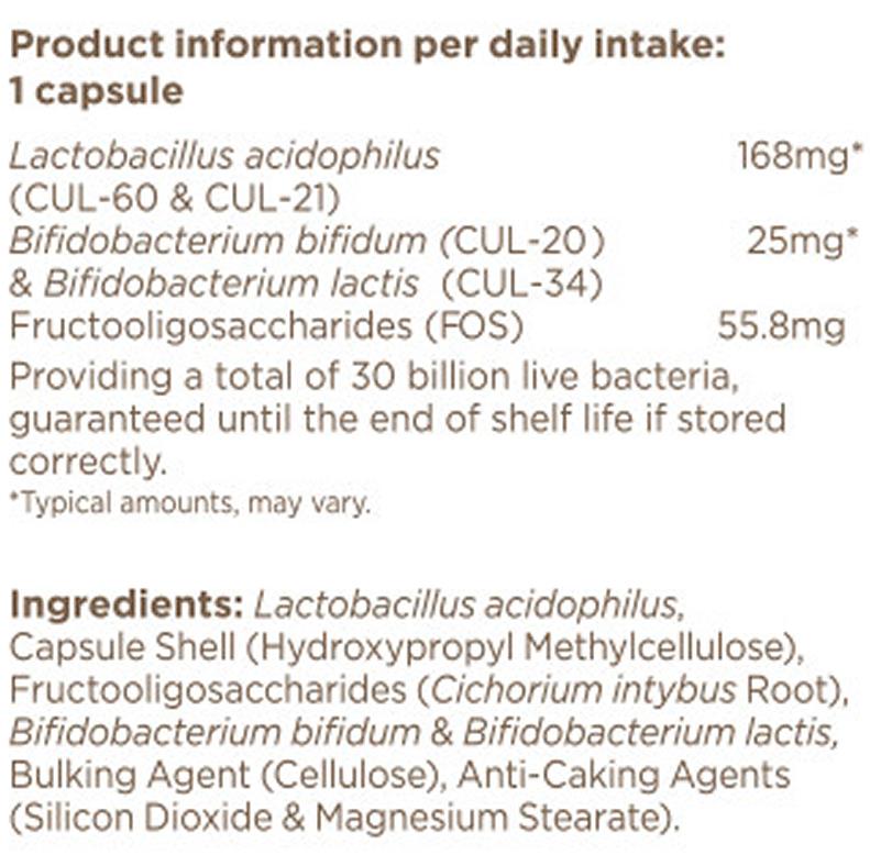 (Providing a total of 30 billion viable proprietary bacteria, guaranteed until the end of shelf life if stored correctly.)