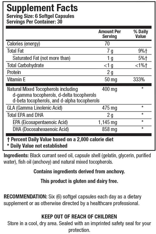 EFA-Sirt Supreme®-BC supplies a unique and highly concentrated essential fatty acid blend, providing an extremely effective relative combination of EPA, DHA and GLA (from black currant seed oil), with all-natural mixed tocopherols, specially formulated to be high in gamma (γ)-tocopherol.