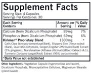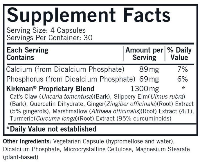 Cat's Claw (Uncaria tomentusa)(Bark), Slippery Elm (Ulmus rubra)(Bark), Quercetin Dihydrate, Ginger(Zingiber officinale)(Root) Extract (5% gingerols), Marshmallow (Althaea officinalis)(Root) Extract (4:1), Turmeric(Curcuma longa)(Root) Extract (95% curcuminoids)